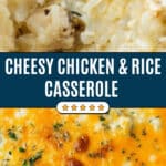 - Serve: Remove the casserole from the oven and let it cool for about 5 minutes. Garnish with fresh parsley before serving for a burst of color and fresh flavor. Enjoy your creamy and cheesy chicken and rice casserole!