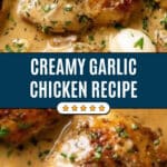Creamy Garlic Chicken is a rich and flavorful dish featuring tender chicken breasts smothered in a luscious garlic-infused gravy with Parmesan cheese and caramelized whole garlic cloves, all made in a single skillet for easy preparation and maximum taste.