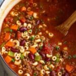 This Pasta e Fagioli Soup is an Olive Garden copycat recipe that delivers a hearty, comforting Italian classic brimming with vegetables, tender ground beef, beans, and ditalini pasta in a rich, flavorful tomato broth. Perfect for a satisfying weeknight meal or cozy lunch, it’s loaded with Italian herbs and finishes with a sprinkle of Romano or Parmesan cheese to elevate every spoonful.