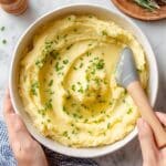 - Serve: Serve the mashed potatoes hot, optionally topped with butter, chopped chives, and/or rosemary for extra flavor.