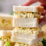 This classic egg sandwich recipe features soft boiled eggs mashed into a creamy filling with mayonnaise, Dijon mustard, and fresh chives, spread between slices of soft white sandwich bread. The sandwich is lightly buttered and is best served at room temperature for optimal flavor and texture.