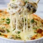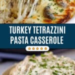 This comforting Turkey Tetrazzini recipe features tender chunks of turkey combined with tender spaghetti, mushrooms, and a rich creamy garlic-flavored sauce, all topped with melted mozzarella and Parmesan cheese. Baked to bubbly perfection, it’s an ideal way to transform leftover turkey into a delicious, hearty meal that serves the whole family.