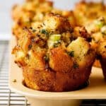 These muffin-shaped stuffings pair perfectly with roasted turkey or chicken, a big pot of easy turkey gravy (a must!), and some roasted Brussels sprouts or glazed carrots. My family loves the combination, especially when there’s cranberry sauce nearby for a sweet-tart contrast.
