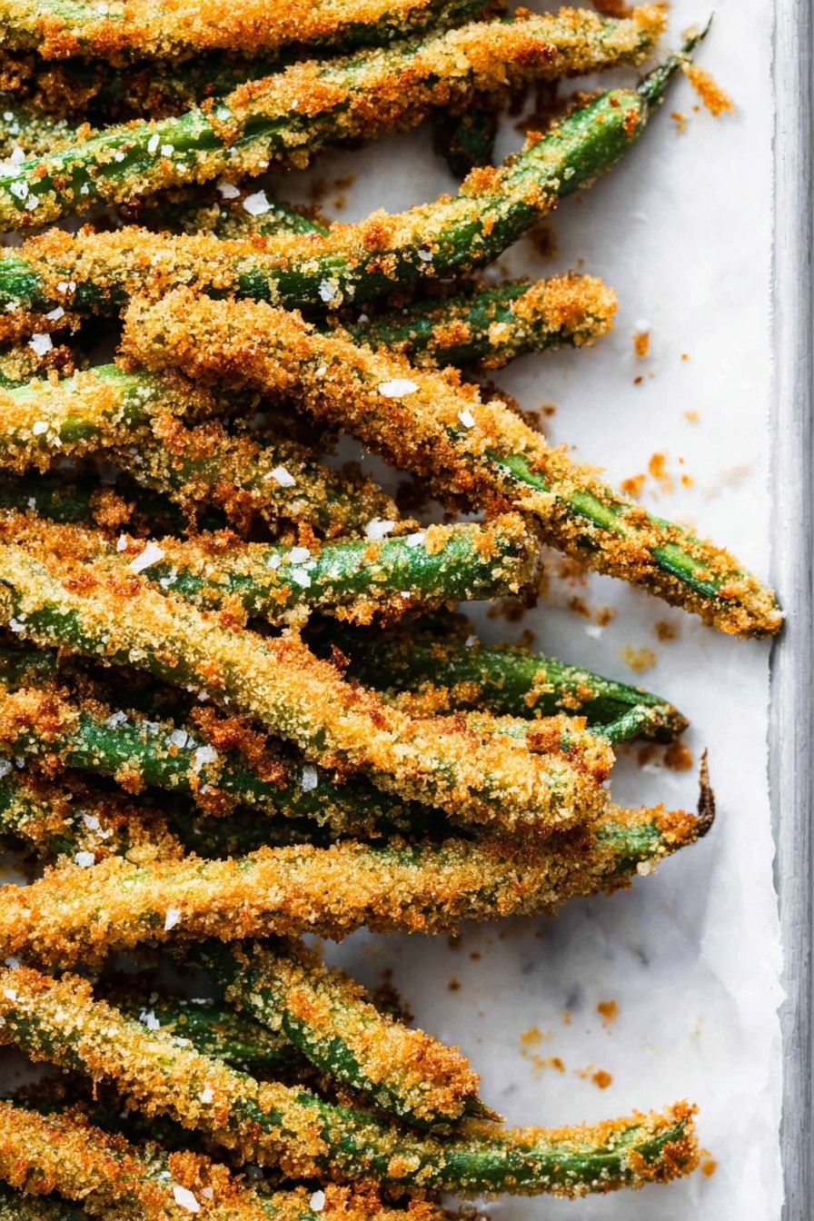 Lay your coated green beans on a parchment-lined baking sheet (don’t crowd them!) and pop them in the oven at 425°F for about 10 minutes, turning halfway through. If you’re using an air fryer, 400°F for around 8 minutes works wonders. You’ll know they’re done when they’re golden brown with crisp edges but still tender inside. I often watch closely during the last few minutes so they don’t overbrown – crispy is great, burnt is not!