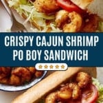 Classic Louisiana Shrimp Po Boy Sandwiches featuring crispy fried shrimp, fresh shredded lettuce, juicy tomato slices, and a zesty homemade remoulade sauce served on soft French sandwich rolls. This flavorful sandwich combines Cajun-spiced breading and a creamy, tangy sauce for an authentic Southern experience.