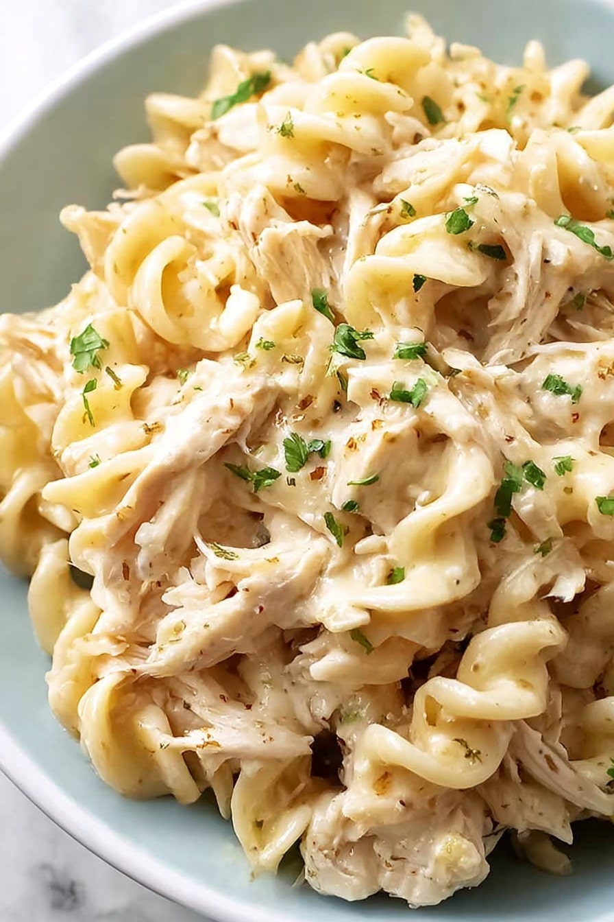 This Crockpot Chicken and Noodles recipe offers a creamy, comforting meal made effortlessly in your slow cooker. Tender shredded chicken and soft egg noodles meld together in a savory cream of chicken sauce flavored with fragrant herbs and spices, perfect for a satisfying family dinner.