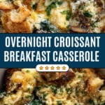 This Overnight Croissant Breakfast Bake is a delicious make-ahead dish featuring toasted buttery croissants layered with sautéed mushrooms, spinach, and a rich custard of eggs, milk, and cream, all topped with melted Gruyere and Parmesan cheese. Perfect for a hearty breakfast or brunch, this casserole is prepped the night before and baked fresh in the morning for a comforting and flavorful start to your day.