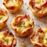 These Croque Monsieur Bites are a delightful twist on the classic French sandwich, featuring layers of ham and melted Gruyère and Swiss cheeses inside flaky puff pastry cups, topped with a savory béchamel sauce and Parmesan. Perfect as a party appetizer or elegant snack, they combine rich, creamy flavors with a crispy golden crust.