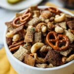 The standard recipe isn’t gluten-free thanks to some of the cereals and crackers. However, you can easily swap in gluten-free versions of cereal squares, pretzels, and crackers to make it safe for gluten-sensitive folks without losing the crunch.
