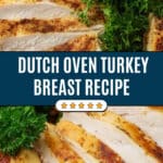 This Dutch Oven Turkey Breast Roast Recipe works best with a 4 to 6-pound turkey breast. Larger breasts might require longer cooking times, so it’s important to use a meat thermometer for accuracy.
