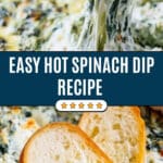 This Hot Spinach Dip is a warm, cheesy appetizer combining cream cheese, sour cream, spinach, and melted mozzarella and parmesan cheeses for a gooey, savory treat. It’s easy to prepare in under 10 minutes and can be made ahead of time, perfect for parties and gatherings served with crackers or baguette slices.