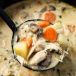 Yes! After sautéing the veggies and adding flour, transfer everything to your slow cooker with the broth, cream, seasoning, mushrooms, potatoes, and chicken. Cook on low for about 6-7 hours or high for 3-4 hours, but add cream toward the end to prevent curdling.