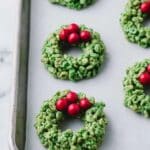 I haven’t personally frozen these wreaths because I like their crisp texture best when fresh. Frozen cornflake treats tend to lose crunch and get a bit chewy after thawing. So if you want to prep ahead, I’d recommend making them a couple days before serving instead.
