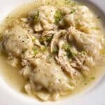This easy homemade Chicken and Dumplings recipe features tender, slow-simmered chicken in a flavorful broth topped with fluffy scratch-made dumplings using just 6 simple ingredients. It’s a comforting Southern classic perfect for cozy family meals with minimal effort.
