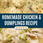This easy homemade Chicken and Dumplings recipe features tender, slow-simmered chicken in a flavorful broth topped with fluffy scratch-made dumplings using just 6 simple ingredients. It’s a comforting Southern classic perfect for cozy family meals with minimal effort.