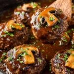 - Finish the Dish: Return the cooked patties to the skillet, spoon the gravy over them, and heat through for another minute. Garnish with parsley if desired and serve hot over mashed potatoes or your favorite side.