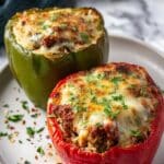 Classic Stuffed Peppers featuring bell peppers filled with a savory mixture of ground beef, rice, roasted tomatoes, and melted cheese. This comforting and nostalgic dish is baked to perfection, delivering tender peppers with a flavorful, cheesy filling that’s perfect for a family meal or weeknight dinner.