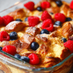 Eggnog French Toast Casserole is a festive and comforting holiday breakfast dish that combines the rich flavors of eggnog, cinnamon, and nutmeg soaked into cubes of French bread. This easy overnight casserole is perfect for Christmas morning, requiring minimal prep the night before and baking to a golden, custardy perfection the next day.