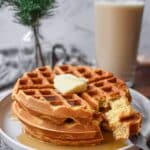 - Serve: Serve the waffles hot with maple syrup, butter, and an optional sprinkle of freshly ground nutmeg for extra festive flavor.