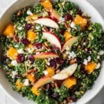 This vibrant Fall Harvest Salad combines roasted butternut squash, quinoa, kale, and crisp apples with a flavorful apple cider vinaigrette. Topped with dried cranberries, pecans, pumpkin seeds, and crumbled feta, it offers a perfect balance of sweet, nutty, and tangy flavors, making it a hearty and healthy seasonal dish ideal for lunch or dinner.