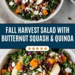 This vibrant Fall Harvest Salad combines roasted butternut squash, quinoa, kale, and crisp apples with a flavorful apple cider vinaigrette. Topped with dried cranberries, pecans, pumpkin seeds, and crumbled feta, it offers a perfect balance of sweet, nutty, and tangy flavors, making it a hearty and healthy seasonal dish ideal for lunch or dinner.