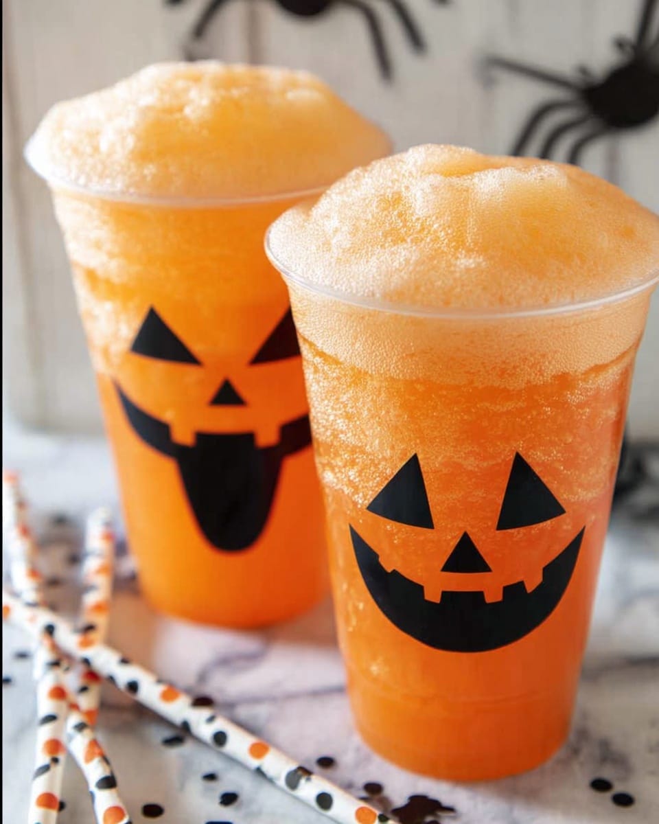 - For a spooky touch, decorate clear cups with jack-o’-lantern faces or Halloween-themed stickers.