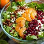 A festive and refreshing Christmas salad featuring mixed spring greens, juicy orange segments, tart pomegranate seeds, creamy feta cheese, and crunchy candied pecans, all tossed in a tangy honey-Dijon apple cider vinegar dressing. Perfect for adding color and flavor to your holiday table.