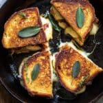 Heat a large skillet over medium heat and place 1-2 sandwiches in it. Cook each side for about 3-5 minutes until golden brown and the cheese is melted. About one minute before the sandwiches are done, add 1/2 tablespoon of butter and 2 fresh sage leaves to the pan. The sage crisps up in the butter and imparts an amazing aroma that really elevates each bite. Repeat this with the remaining sandwiches. Serve immediately, topping each with the crispy sage leaves from the pan. Your kitchen is about to smell irresistible!