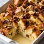 - Cool and Garnish: Allow the casserole to cool for about 10 minutes before serving. Sprinkle dried cranberries and dust with powdered sugar. Serve with maple syrup on the side.