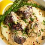 - Make Parmesan Cream Sauce: To the skillet with residual butter and garlic, add 2 tablespoons butter and the remaining minced garlic. Sauté until fragrant. Slowly whisk in the heavy cream and bring the mixture to a gentle simmer, allowing it to reduce and thicken for 3-5 minutes. Stir in red pepper flakes, diced green onions, and parmesan cheese. Whisk continuously until the sauce thickens. Adjust seasoning with salt and pepper to taste.