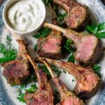 For parties, I’ve trimmed the racks and presented the lamb chops standing upright on a platter for a dramatic, elegant look. You can also serve each chop individually drizzled with a balsamic reduction or topped with a dollop of chimichurri sauce for something extra special.