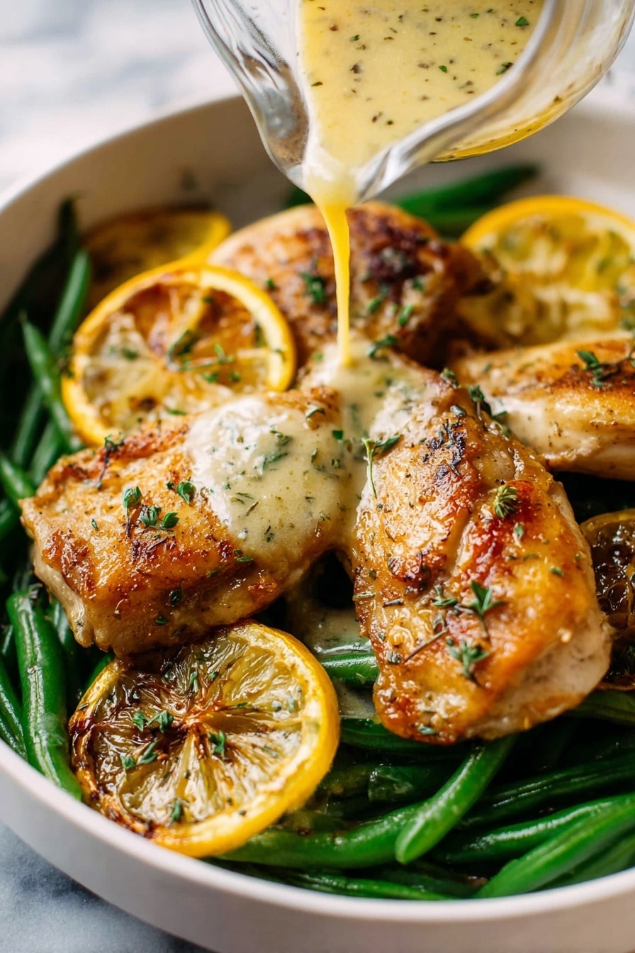 - Assemble and Serve: Pile the cooked chicken on top of the sautéed green beans. Drizzle the prepared garlic lemon butter sauce over the chicken and vegetables, or serve it on the side for individual servings. Enjoy immediately.