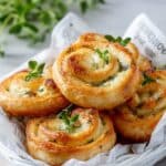 Tender Garlic Puff Pastry Pinwheels are flaky, buttery bites infused with aromatic tender garlic, fresh thyme, and sharp aged cheddar. These easy-to-make pinwheels make a perfect appetizer or snack, offering a delightful combination of crisp pastry and rich, savory flavors baked to golden perfection.