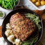 - Coat Lamb: Rub the herb mixture thoroughly all over the entire leg of lamb, ensuring every side is coated. Arrange the optional whole garlic heads and rosemary sprigs around the lamb in the roasting pan for added flavor.