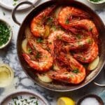 Each ingredient in this Garlic Shrimp Skillet Recipe plays a starring role to give you that perfect blend of spice, warmth, and freshness. I find that using fresh spot prawns with shells on locks in the juiciness and flavor.