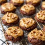 German Chocolate Cookies combine the rich, gooey coconut-pecan topping of the classic German chocolate cake with chewy chocolate cookies for a deliciously unique treat. This recipe features a creamy, nutty filling spread over soft, cocoa-flavored cookies, perfect for chocolate lovers looking for a nostalgic twist in cookie form.