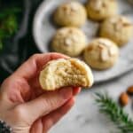 If I want to prepare in advance, I freeze the unbaked dough balls arranged on a baking sheet, then transfer them into a freezer bag once solid. When I’m ready to bake, I just thaw them in the fridge overnight and press in the almonds — freezing really helps with shaping and timing during busy holiday prep.