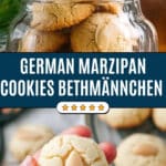 Classic German Bethmännchen cookies made with homemade marzipan, almond flour, and decorated with sliced blanched almonds. These chewy, nutty treats are perfect for holiday celebrations and are easy to prepare with just a few simple ingredients.