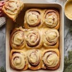 - Frost Rolls: Spread the molasses cream cheese frosting generously over the warm cinnamon rolls. Serve immediately for best flavor and softness.