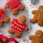 One year, I arranged my decorated gingerbread men standing in little mini “snow villages” made from coconut flakes and tiny peppermint sticks. It’s a fun way to dress up your holiday table or gift boxes. You can also string them with ribbon after baking to hang as edible ornaments!
