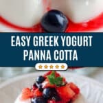 This Easy Greek Yogurt Panna Cotta is a light and creamy no-bake dessert that replaces traditional cream with Greek yogurt and milk for a healthier twist. The panna cotta is delicately flavored with lemon zest and juice, set with gelatin, and paired with thyme macerated fresh berries for a refreshing, aromatic finish. Perfect for hot summer days, this elegant yet simple dessert requires minimal cooking and refrigeration time.
