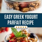 A quick and delicious Greek Yogurt Parfait recipe featuring creamy Greek yogurt layered with fresh fruit and crunchy granola, optionally sweetened with honey or maple syrup for a nutritious breakfast or snack.
