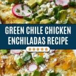 These Green Chile Chicken Enchiladas feature tender shredded rotisserie chicken infused with aromatic spices, wrapped in tortillas soaked in zesty green chile enchilada sauce, topped with a generous layer of melted Mexican cheese, and baked to perfection for a flavorful and comforting Mexican-inspired meal.