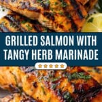 - This grilled salmon is coated in a flavorful marinade then grilled until golden brown, making it a super easy and impressive dinner option.