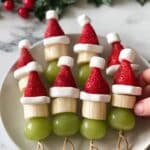 These festive Grinch Kabobs are a fun and healthy holiday treat featuring a colorful combination of green grapes, banana slices, strawberries or raspberries, and miniature marshmallows threaded onto toothpicks. Perfect for kids and adults alike, they’re easy to prepare and ideal for parties or a light snack.