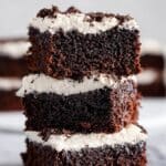 Decadent and fudgy Guinness Chocolate Brownies with a rich Baileys Swiss Meringue Buttercream frosting. These brownies combine the deep malty flavor of Guinness stout with intense Dutch-process cocoa and chunks of chocolate for a chewy texture and a crinkly top. Perfect for St. Patrick’s Day celebrations or any occasion that calls for a boozy and indulgent treat.