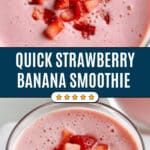 A quick and refreshing Strawberry Banana Smoothie made with fresh strawberries, frozen banana, creamy Greek yogurt, and milk. Perfect for a healthy breakfast or snack, this smoothie blends together in minutes for a delicious and nutritious treat.