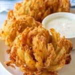 - Drain and serve: Remove the blooming onion from the oil and drain on paper towels to remove excess oil. Serve immediately with the prepared dipping sauce.