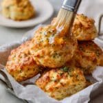 While the biscuits bake, whisk together melted butter, garlic powder, and dried parsley. As soon as the biscuits come out of the oven, brush this garlicky butter generously over them—it’s what takes these biscuits to that next level of irresistible. Serve them warm—you’ll love how the cheese melts a little and the garlic butter soaks in.