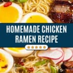 This Easy Homemade Chicken Ramen recipe delivers authentic Japanese flavors in a comforting noodle soup, featuring tender caramelized soy chicken, flavorful broth infused with garlic, ginger, and shiitake mushrooms, topped with ramen eggs and fresh Asian greens. Perfect for a satisfying dinner with a balanced combination of savory, spicy, and umami notes.